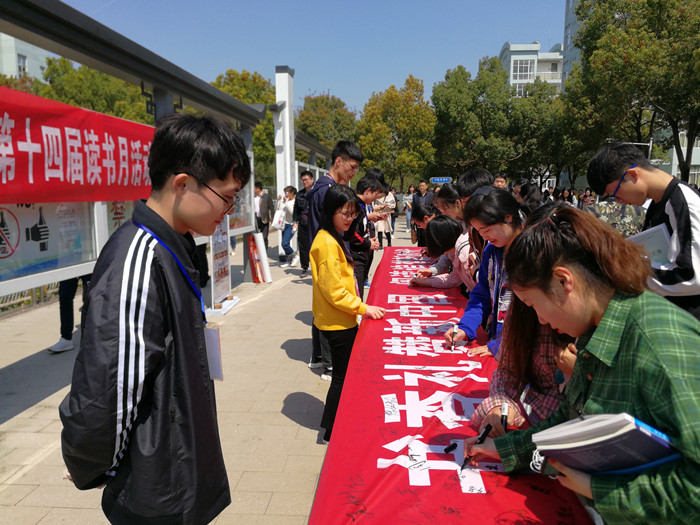 4月1日中午,图书信息中心组织开展“书香礼赞新中国 阅读追梦新时代”读书月主题签名活动,邀请全校师生共同参与阅读,分享阅读。
