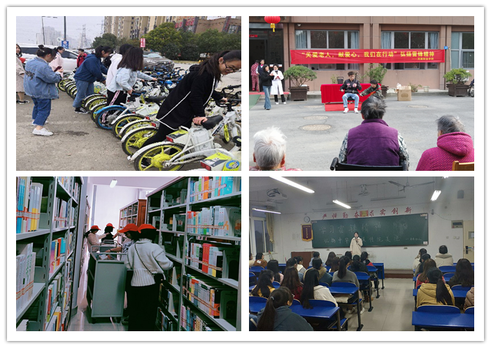 组织学雷锋活动,弘扬雷锋精神。三月,各团支部组织召开“传承雷锋精神,弘扬道德风尚”主题班会,开展图书馆图书整理、扶起单车、卫生死角清理等活动。团总支组织“茂荫帮帮团”积极了解身边同学所面临的实际困难,开展互帮互助,帮助解决同学们在学习、生活、工作中的实际问题。3月24日,在茂荫财金学院团总支书记梁惠婷的带领下,茂荫财金学院中特会,团总支、学生会相关部门62名青年志愿者走进合肥市明珠晚晴敬老院,为他们送去温馨的问候和真心的祝福。践行尊老爱老敬老,弘扬中华民族传统美德。同学们在活动中学会关爱他人,感恩生活,锻炼意志。
