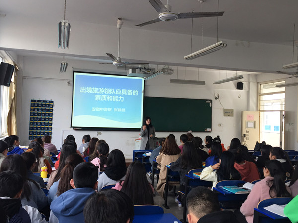 3月19日,朱熹文旅学院邀请安徽中青旅出境旅游领队张静晶为2017级旅游管理专业学生做了一场精彩的讲座。
