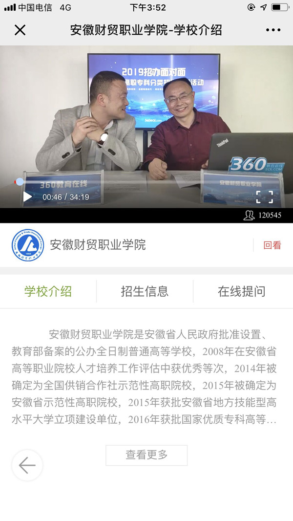 直播活动中,针对主持人提出的广大考生及家长关心的分类招生的热点问题,如:“推荐适合男生、女生的专业”,“今年的招生计划和往年的区别”,“分类招生考试校考的内容是什么”,“分类招生考试录取的政策有没有变化”,“安财院的就业情况如何”“填报志愿的注意事项有哪些”等问题,陶云龙进行了详细的解读。观看直播的考生可通过直播网站链接了解学校招生信息并在线提问,全方位了解学校的分类考试招生政策。