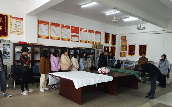 3月8日中午,在大位会计学院党总支副书记雷青梅和公共教学部副主任杨声的共同组织下,举办针对中专部学生的叠军被培训会。