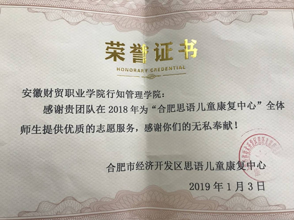 行知管理学院长期以来一直注重将对学生的思想引领与实践教育相结合,培养学生 “奉献、友爱、互助、进步”的志愿精神,为学生积极搭建平台、促其成长。思语儿童康复中心是行知管理学院建立的第二家大学生志愿者服务基地,经常性的开展帮扶活动,亦是行知管理学院10年的志愿者服务的传承。行知管理学院志愿者服务队已经成立了10年,这10年来的志愿者活动的开展增强了我们大学生的社会责任感,同时以志愿者的实际行动号召更多的人来关爱社会中的弱势群体,为自闭症儿童搭建新的爱心平台,奉献更多的关爱,温暖他们的心灵、点亮他们的人生,为他们的自由成长撑起一片蔚蓝的天空。(供稿:左艳琼,审稿:唐学华)