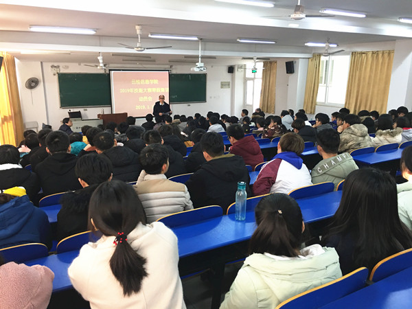 为积极准备2019年安徽省职业技能大赛,1月18日下午,云桂信息学院在6101教室召开寒假集训动员会。云桂信息学院副院长张成叔、14个赛项的负责人及全体寒假留校集训的学生参加大会。会议由云桂信息学院副院长姚成主持。