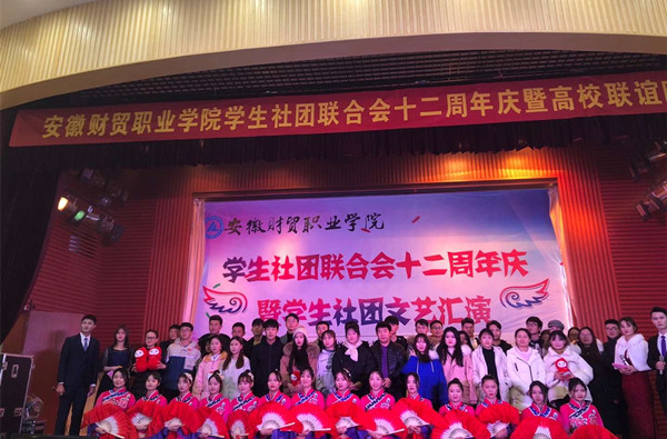 12月28日晚,学校学生社团联合会十二周年庆暨学生社团迎新文艺汇演在报告厅举行,合肥工业大学、合肥师范学院、合肥财经职业技术学院、合肥信息职业技术学院和安徽国际商务职业技术学院等15所兄弟院校的学生社团干部代表,学生社团会员及我校学生代表共计400余人共同观看了晚会。