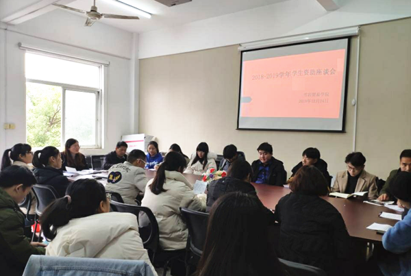 为更好的开展学生资助工作,倾听学生的所思所想,帮助贫困生树立自强、感恩意识,12月24日中午,雪岩贸易学院召开2018-2019学年学生资助座谈会,雪岩贸易学院党总支书记高尔定、团总支干事、学生秘书、专职辅导员以及20多名受助学生代表参加了此次座谈会。