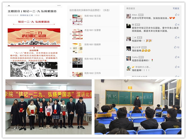 为落实校团委《关于开展“铭记一二九,弘扬爱国志”主题团日活动的通知》文件精神,增强同学的爱国意识,时刻提醒在校大学生立志成才,报效祖国,铭记历史,勿忘国耻。茂荫财金学院于12月开展了“铭记一二九,弘扬爱国志”主题团日系列活动,积极打造项目化、特色化、精品化的主题活动。