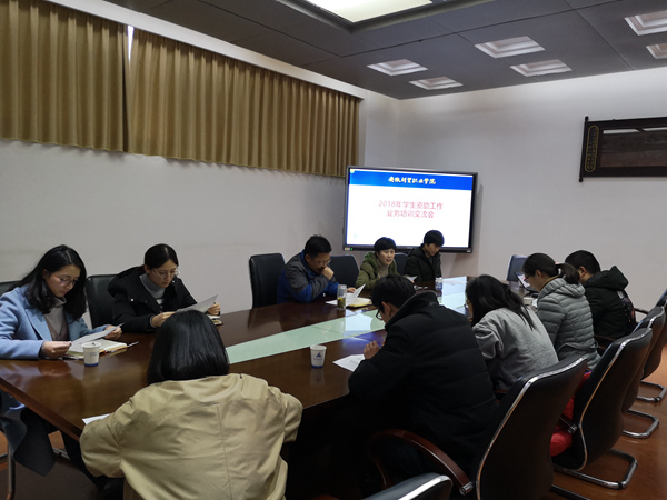12月25日下午,学生处组织召开2018年学生资助工作培训交流会。茂荫财金学院党总支副书记胡宏萱、宾虹艺术学院党总支副书记张伟、各二级学院学生秘书参加会议。