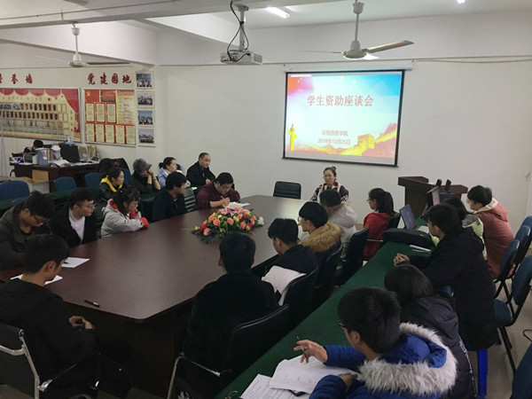 为检验本学期开学至今的学生资助工作成果,进一步发挥资助育人功效,12月25日下午,云桂信息学院召开2018-2019学年学生资助座谈会。云桂信息学院党总支副书记倪晶晶、学生秘书、专职辅导员以及15名学生代表参加了此次座谈会。