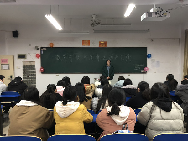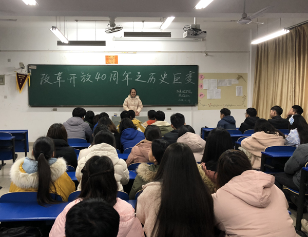 12月18日晚,朱熹文旅学院团总支组织组织团学干部、入党积极分子与各班团支部集体观看“庆祝改革开放40周年大会”全程视频。引导学生了解中国社会历史的变迁,了解中华人民努力奋斗的艰辛历程,了解中国改革开放以来取得的丰硕的现代化建设成果。同时让学生以“改革开放40周年之历史巨变”为主题,总结自己观看后的心得感受与体会。