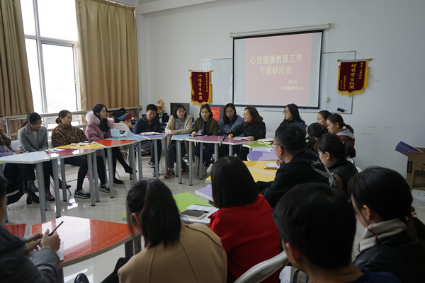 11月30日下午,学生处在心理健康教育中心团训室召开本学期第二次学生心理健康教育专题研讨会。各二级学院心理联络员、心理兼职老师、专职辅导员、团总支书记、学生秘书等参加会议,由心理健康教育中心汤亦瑾老师主持。