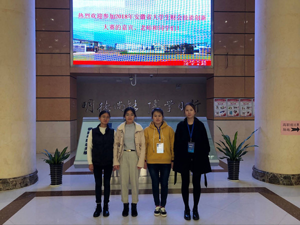 11月18日,第二届大学生财会技能创新大赛在铜陵学院举行。本次大赛来自全省30所高职院校的53支代表队参加。经过激烈角逐,在张露、李晶老师的指导下,大位会计学院邢维云、肖妍、陈晓和陆梦情同学组成的参赛团队荣获一等奖。