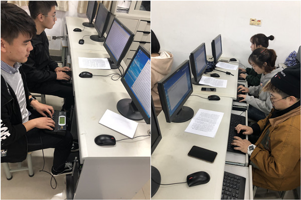 本次选拔赛借鉴往年安徽省职业院校技能大赛(高职组)文秘速录专业技能竞赛规程,根据学院设备实际情况,将比赛分为极限看打、实时听打与模拟办公管理三个赛项,参赛同学选择使用亚伟中文速录机或标准电脑键盘作为比赛的文字录入工具。参赛同学提前到教室签到准备,比赛中同学们认真专注、运指如飞,表现出娴熟的录入技巧。