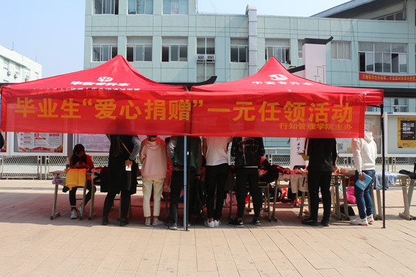 10月27日至11月2日,行知管理学院在食堂西门组织了为期一周的2019届毕业生爱心捐助“一元任领”毕业生爱心捐助文明离校活动。