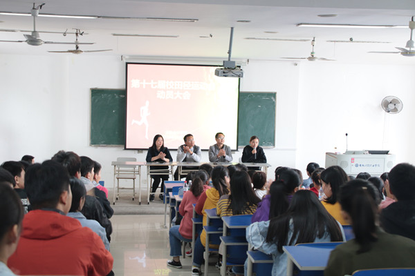 10月19日中午,大位会计学院在5202教室召开了第十七届校田径运动会动员大会。大位会计学院党总支书记张少兵、党总支副书记雷青梅、教练桑磊、团总支书记沈丽萍、专职辅导员老师以及学生干部、全体运动员共同参加。