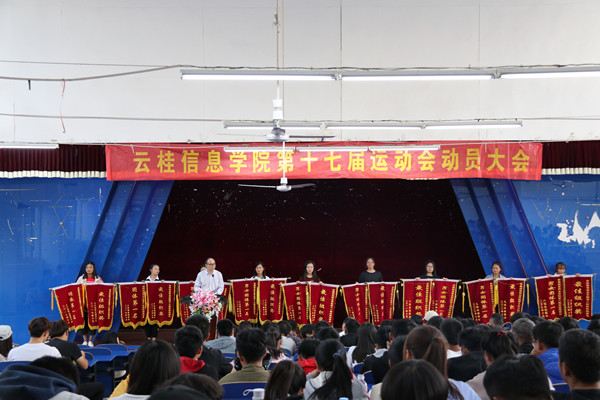 10月10日下午,云桂信息学院第十七届田径运动会动员大会在5103教室召开,大会由院团总支书记梅云凤主持,云桂信息学院副院长张成叔、党总支副书记倪晶晶、副院长姚成、各班级辅导员以及学院所有团学干部和班长、体委、运动员参加了本次动员大会。