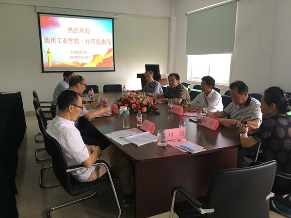9月12日下午,池州工业学校校长夏羽、实训处主任洪后加、总务处副主任汪伙勇来云桂信息学院考察交流,云桂信息学院副院长张成叔、党总支副书记倪晶晶、副院长姚成、软件技术教研室主任房丙午、办公室主任刘燕、北大青鸟安徽服务中心总经理凌滨就北大青鸟特色班项目的合作模式、发展历史、社会效应展开交流学习。