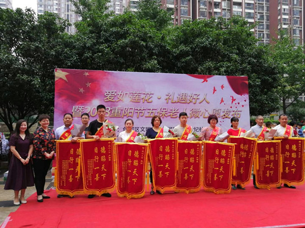 9月16日上午,“爱如莲花 礼遇好人”暨2018重阳节五保老人微心愿发布活动在蓝鼎观湖苑内如期举行。此次活动由包河区文明办、包河区滨湖世纪社区主办, 包河区滨湖世纪社区观湖网格党支部、安徽善之源公益教育发展中心承办,朱熹文旅学院党总支副书记宋凌云、党员教师许锬和10名礼仪队队员及各界社会爱心人士参加了活动。