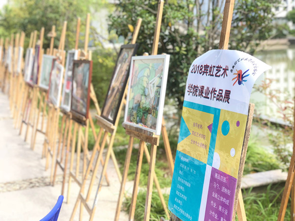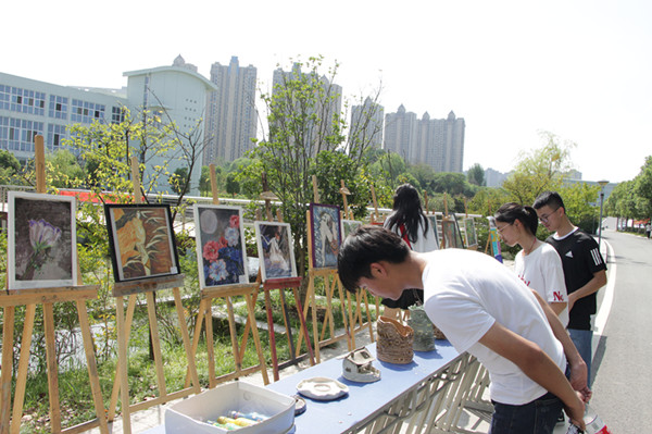 9月19日,宾虹艺术学院主办的“艺术风”2015—2017级学生艺术作品展在图书馆西侧道路旁拉开帷幕,此次展出的作品有绘画、陶瓷、马勺、手工艺术品、模型等,分为马勺手工艺品展示区、立体构成手工艺术品展区、扎染刺绣展示区、建筑模型展示区,画作展示区等五大展区。