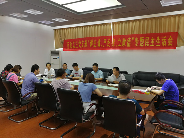 根据省社机关党委和学校党委关于“讲忠诚、严纪律、立政德”专题警示教育工作统一部署,8月13日上午,行政第三党支部在行政楼第三会议室召开“讲忠诚、严纪律、立政德”专题警示教育组织生活会,会议由支部书记张克主持,支部全体党员参加了会议。
