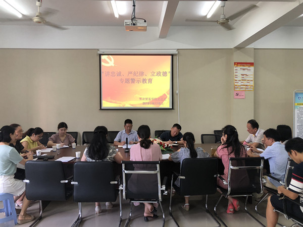 8月15日上午,雪岩贸易学院党总支在教师办公室举办“讲严立”专题警示教育系列活动,党总支全体党员参加会议。