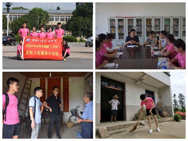 根据团中央及校团委的相关精神,朱熹文旅学院团总支积极开展“2018年大学生暑期三下乡活动”,经过前期的宣传动员,学院遴选优秀志愿者组成了“教育关爱服务队”、“美丽中国实践队”、“彩虹人生服务队”三支队伍,对接服务舒城县阙店乡转水湾村和管岭村。