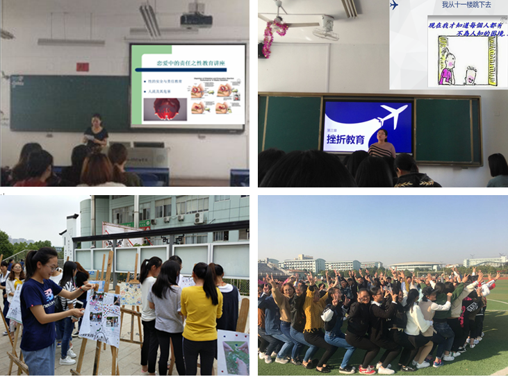 讲座、主题班会、班级活动、口语训练、网络平台、谈心谈话等是高校育人的丰富载体,大位会计学院专职辅导员们利用各种载体,各显神通,开展了一系列的心理健康教育工作。马兰燕老师从学生身心成长规律出发,开展“恋爱中的责任之性教育”讲座,反响热烈;刘凯老师创建“大位心灵避风塘”微信公众号服务学生,组织大位新生班级以“心理健康社会和谐”为主题开展口语训练,主动开展校园心情景剧大赛,并指导大位心理部开展了诸多心理健康活动(如孤独症儿童志愿服务、笑脸征集、手抄报比赛、心理演讲比赛等),既支撑了校心理健康节系列活动,也为大位学子呈现了丰富的心理盛宴;任正盼老师召开挫折教育主题班会,对学生进行团体辅导,引导学生以正确的心态对待挫折,战胜挫折;王繁老师带领学生开展“凝心聚力、共建班集体”班级活动,阐明集体意识与沟通交往的内涵;何小兰、周安琪、齐杰、刘夏、陈雪老师在学生的学业、人际关系、择业就业、生涯规划、理想信念等方面均做了相关工作,这些都是大学生心理健康教育的重要内容。各位专职辅导员始终将谈心谈话作为关爱学生、引导学生、深入开展个体心理健康教育的重要手段,帮助学生解决实际困难。