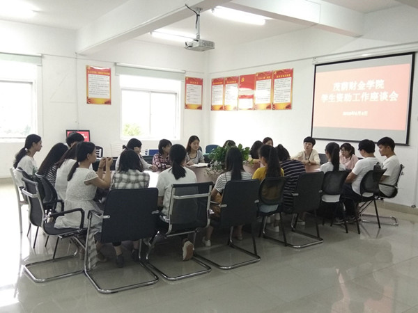 6月4日晚,茂荫财金学院召开学生资助工作座谈会,来自各班级的20余名受助学生代表参加座谈会,党总支副书记胡宏萱主持会议。