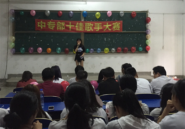5月30日中午,中专部在E1005教室举办十佳歌手大赛,2016、2017级全体学生以及2015级学生干部齐聚于此观摩了此次大赛。中专部副主任徐道根、杨声、廖步岩以及各班级辅导员作为嘉宾评委共同出席了本次活动。