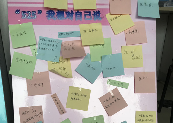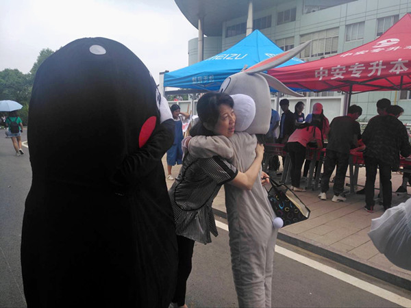 活动以“悦纳自我,感悟生活”为主题,分为“爱的拥抱”和“心灵寄语”两部分,旨在呼吁同学们打开心扉,悦纳自我和他人。活动中,心理部精心挑选目前在网络上爆红的两个卡通形象,由心理部两名同学身着卡通人物服装,给前来的同学送去“爱的抱抱”,用各种软萌表情逗乐过往师生,老师和同学们纷纷驻足停留,热情与其拥抱和合影,场面十分温馨。在设立的“心灵寄语”展示台上,同学们也都敞开心扉,认真写出自己心底的“感恩”与“祝福”,感恩亲人、感恩朋友,祝福他人、祝福自己。