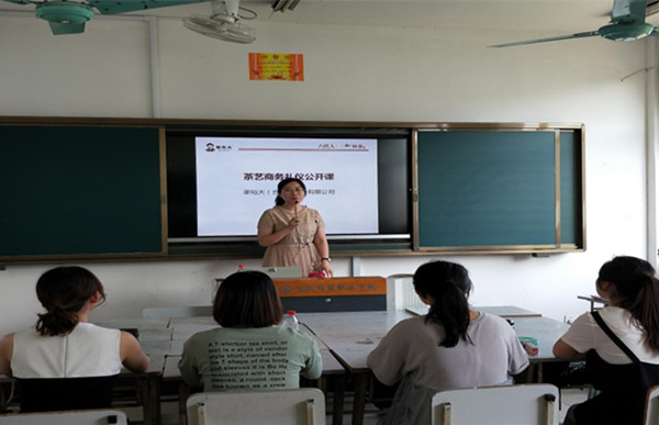 企业家幽默风趣的语言,活泼轻松的课堂氛围,精彩典雅的茶艺表演,赢得了同学们的一片赞叹,本次企业高管进课堂的成功开展,不仅为同学们带来茶艺礼仪的培训和茶叶营销的技巧,更是立足行业现状和市场需求,为同学们开拓了眼界,坚定了同学们对于未来职业生活的信心。(供稿:程庆珊)