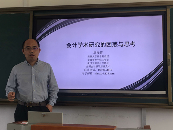 5月9日下午,大位会计学院在3104教室举办专家学术讲座,安徽大学商学院周泽将教授应邀作了题为《会计学术研究的困惑与思考》的专题报告,共30余名教师出席。