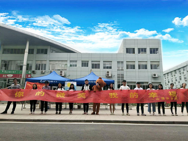 心理咨询老师和心协志愿者向同学们介绍了“世界微笑日”的来历及意义,同学们纷纷在“你的微笑,我的幸福”宣传横幅上签名。为活跃氛围,心协同学特地扮成一只可爱的小熊逗得大家开心欢笑,并赠送笑脸小徽章,呼吁同学们用微笑传递友谊,用微笑传播文明。