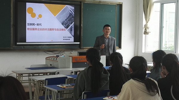 4月23日上午,安徽华地物业管理服务有限公司人事总监祝小龙应邀走进了物业管理专业《物业法规》的课堂,为行知管理学院物业管理1701班的学生做了一场“互联网+时代物业服务企业的依法服务与合法维权”专题讲座。