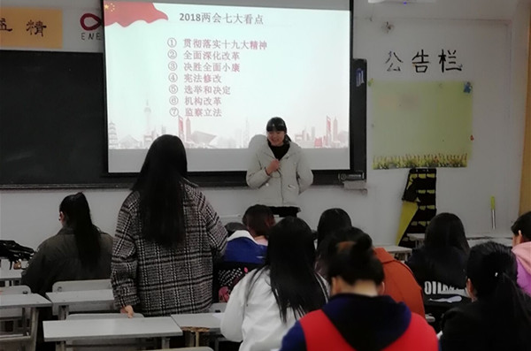 3月份,马克思主义学院举办两会主题课堂,传递2018年两会声音,引导大学生自觉关注时事政治,关心国家大事。