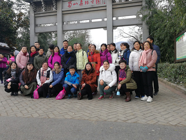 大家精神抖擞地行进在蜿蜒的盘山路上,呼吸着山间新鲜的空气,欣赏着蜀山的雪景,放松平日紧张忙碌的心情。一路上大家的说笑声,赞叹声和山中的美景相融合,让我们瞬间忘记了工作的疲惫,艰难的登山也在大家的说笑声中变得轻松起来。