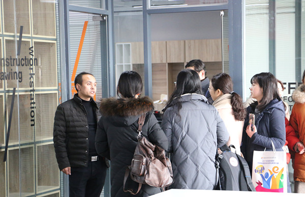 在实地考察环节,安徽商贸职业技术学院艺术设计系副主任吴昊就艺术设计类专业人才培养模式为与会老师举行专题培训。随后,宾虹艺术学院教师一行参观了商贸师生自主设计的新食堂、并深入到工作室、工作站,与相关负责人就工作室建设、学生管理、项目对接、考核评价等具体问题与负责人员进行了深入交流和沟通。