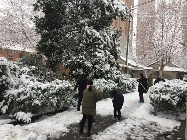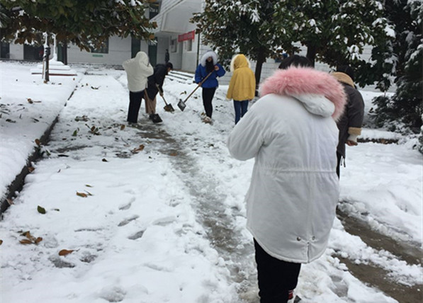 1月3日开始合肥持续降雪,中专部校内道路积冰、积雪,给在校师生的教学和出行带来了极大的不便,为应对暴雪可能带来的安全隐患,保障中专部师生的正常学习和生活,5号上午,学生干部们在中专部副主任徐道根、杨声的带领下,开展了“清除积雪 保障安全”的志愿服务活动。