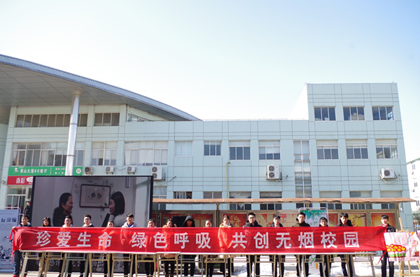 校团委以“携手禁烟行,共创清新校园”为主题,通过举行主题签名、悬挂宣传标语、发放禁烟宣传资料、播放禁烟宣传短片来引导青年学生加强对禁烟意识的自我教育。在签名现场,同学们纷纷在主题横幅上签名,表示对禁烟行动的支持。校学生会、青年志愿者发放了禁烟宣传单,宣传吸烟对公共环境及个人身心健康的损害。宣传现场还播放了禁烟宣传片,宣传片中,同学、家长、领导、老师等社会多种角色的人物都发表了对吸烟行为的观点,呼吁强化禁烟意识,加大禁烟力度。