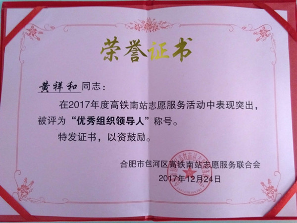 12月底,合肥高铁南站志愿服务联合会举办了以“不忘初心 爱在南站”为主题的2017年优秀志愿者表彰暨2018年元旦联欢会。宾虹艺术学院志愿小分队参加了此次大会。
