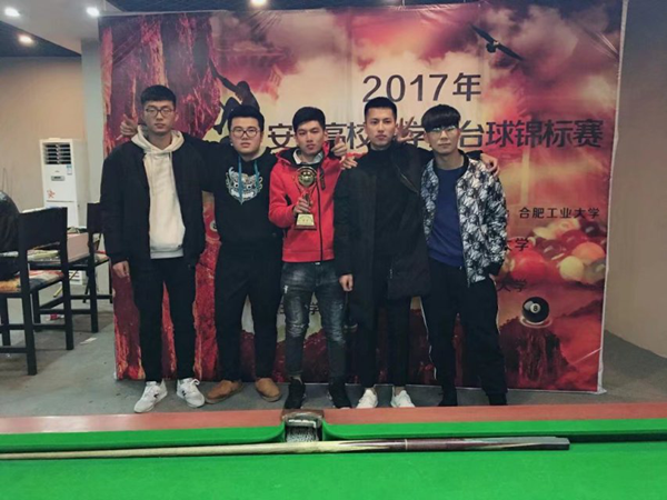 比赛由合肥市台球联盟、合肥工业大学联合主办。2017年10月,台球协会接到比赛通知后,组建了吴逸、岳银圣、王振强、李松延、唐斌等五名同学的参赛团队,五位同学利用课余时间刻苦训练,不断突破,最终为学校赢得了荣誉。