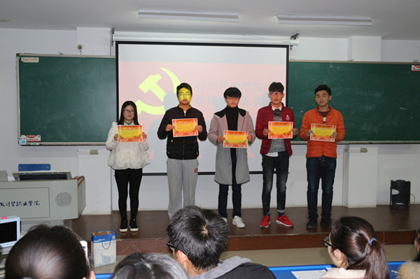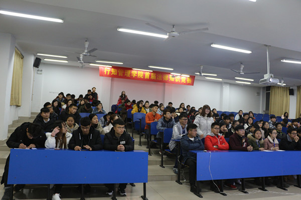 党的十九大报告提出,明确全面推进依法治国总目标是建设中国特色社会主义法治体系、建设社会主义法治国家。必备的法律素养,是当代大学生立足社会的基本条件。12月19日晚,行知管理学院团总支举办了首届大学生法律知识竞赛,行知管理学院左艳琼、蔡玉菊等5位老师和200余名学生代表观看了本次比赛。