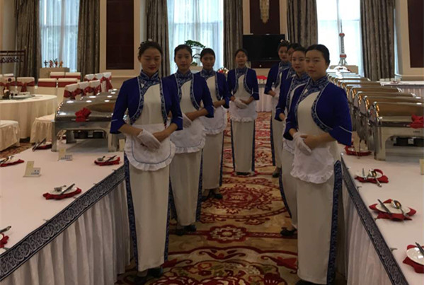 8名同学到馆后,餐饮部给同学们介绍了任务相关讯息并进行了分工。同学们在各自岗位上凭借着过硬的自身素质和热情周到的服务给来宾留下了美好印象,也得到政府接待部门及宾馆领导的首肯。