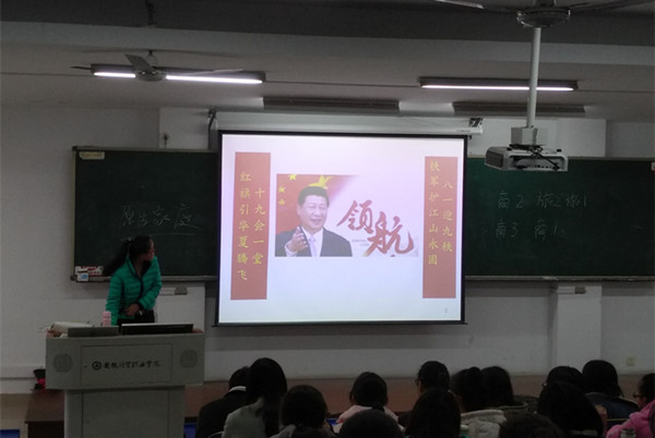 党的十九大胜利闭幕后,马克思主义学院教师积极收集、整理报告中的关于党和国家建设中的新论点、新观点和新提法,并将这些新论点、新观点和新提法巧妙地融入到“两课”课程的教案中,并在教学课堂中进行了重点介绍和讲解。