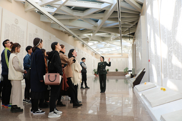 人民英雄青史颂,渡江精神新辈弘。馆中英雄纪念墙上,看是来自到渡江战役中牺牲的英雄们的名字,还有很多英雄们没有辨认出名字,纪念馆为此建立了无名英雄纪念碑,以此纪念逝去的英雄们。看到为历史献身的英雄们,同学们纷纷驻足致敬。伴着讲解员的一席话:“革命先辈用战火和鲜血铸就的渡江战役精神,标志着一个旧时代的终结和人民当家作主新时代的到来。他们的事迹,不仅谱写了中国革命史的光辉篇章,更重要的是,也将永远激励着我们中华民族一代代儿女奋斗前进。”同学们感慨万千:“重温了新中国成立之前那段血雨腥风、惊天动地的战争历史,我更加体会到了如今生活的来之不易,饮水思源,我们当代中国的大学生,绝对要牢记革命先辈的伟大精神,继承和发扬他们的革命精神,艰苦奋斗,这样我们的民族才有希望,我们的国家才会健康长存下去,日益强盛。”