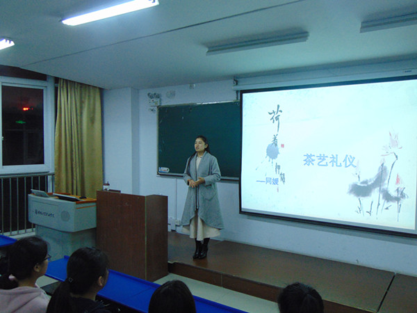 11月16日晚,朱熹文旅学院于6101教室举办中国传统文化-----茶艺礼仪讲座。本次讲座由国家高级茶艺师罗丹担任主讲人,2016级和2017级学生代表聆听讲座。