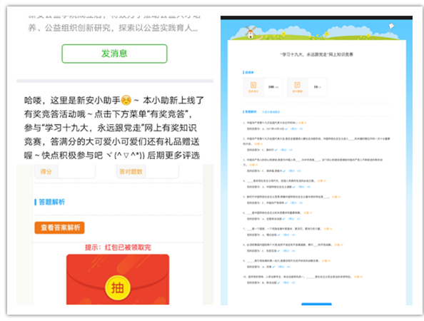 11月14日,朱熹文旅学院微信公众号上线“学习党的十九大,永远跟党走”网上有奖知识竞赛,全院师生踊跃参与竞答活动。