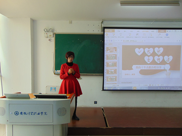 传递社会正能量,了解志愿者精神,11月15日下午,朱熹文旅学院党总支“一支部一品牌”新安公益学院致敬行善者项目邀请武美女士在6201教室开展“心感恩,爱传递,我的十年志愿经历分享会”讲座。朱熹文旅学院党总支副书记、新安公益学院执行院长宋凌云,副教授许锬,新安晚报旅游事业部副主任刘高威出席本次讲座,2017级志愿者代表踊跃参与。