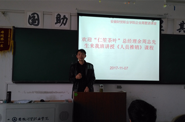 11月7日上午,雪岩贸易学院邀请“仁笙茶叶”创始人、总经理余周志为营销1602班的同学上了一堂生动的《人员推销》课。