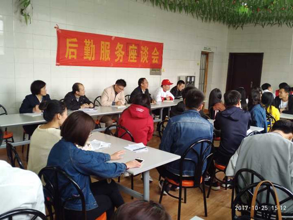 近日,总务处召开后勤服务学生座谈会,总务处副处长何步新、魏立新、餐饮中心主任张超、三个托管经营食堂的经理和30多名同学参加了座谈。会议由何步新主持。