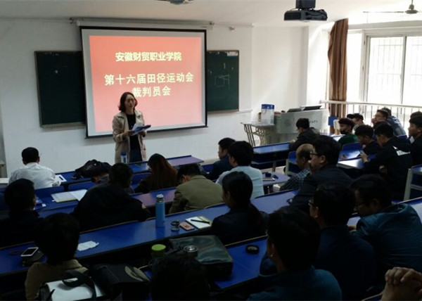 学校第十六届田径运动会于10月26-27日召开,为保证校第16届田径运动会顺利举行, 10月25日中午,公共教学部在5101教室组织召开本届运动会裁判员会议。校运会全体裁判长、裁判员参加会议。